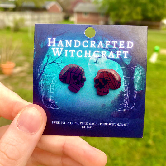 Powerful things come in small forms. This collection of handcrafted stud earrings carries the energy of transformation, protection, and mystery. From eerie skulls to enchanting gradients, each pair is sculpted with intention and a touch of magic. Whether you're drawn to gothic elegance, celestial energy, of the subtle whispers of the unknown, these studs are a perfect way to keep your magic close-everyday and always.