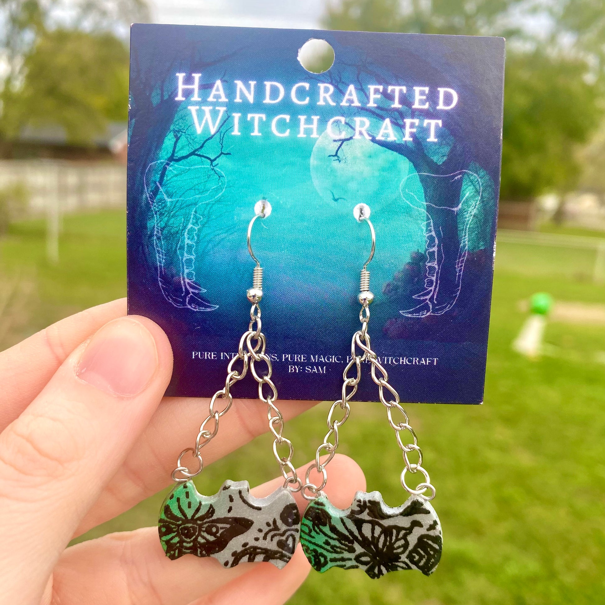 Crafted with care, the bats are ethically made, offering a way to celebrate the beauty of these creatures without harming any real bats. The nickel-free hardware ensures a comfortable fit, while the striking gradient colors and detailed overlays make these earrings a true statement piece.