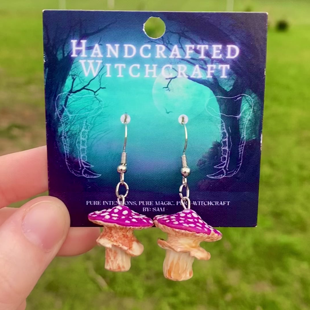 Step into the mystic world of self-discovery and intuition with these hand-sculpted polymer clay mushroom earrings. The vibrant purple caps are known for their connection to spiritual growth, psychic abilities, and embracing the mysteries of the unseen. With a brown wash that highlights the crevices, these earrings have a unique, organic look that speaks to both nature and magic.