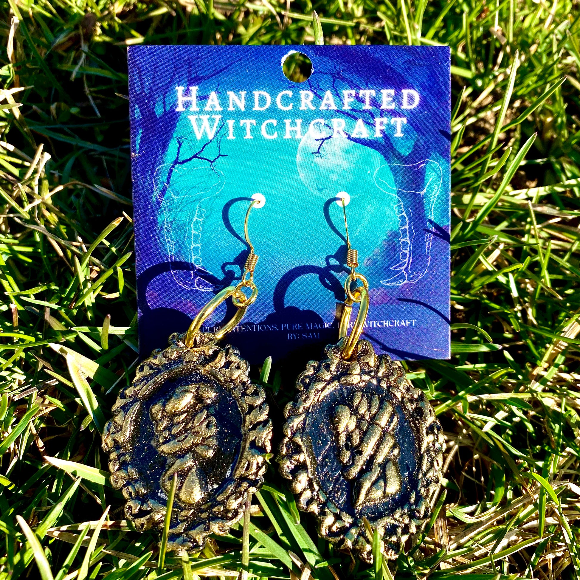Suspended from 18k gold-plated hardware, these dangle earrings are a perfect balance of dark elegance and timeless style. A striking statement piece for those who embrace the beauty in both life’s fragility and its enduring spirit.